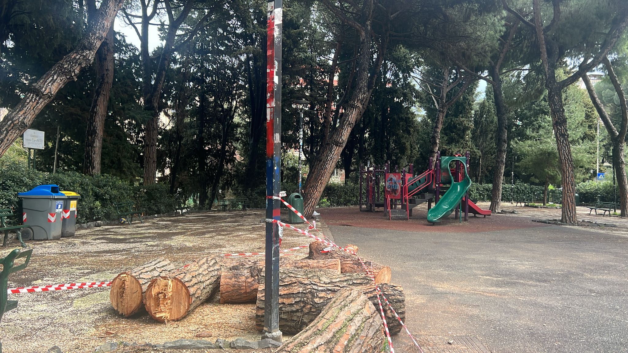 Per fortuna, il cedimento si è verificato alle 11 in un momento in cui sotto non passava nessuno e, in particolare, nessun bambino stava giocando sullo scivolo adiacente lambito dalle fronde dell'albero che si è abbattuto.