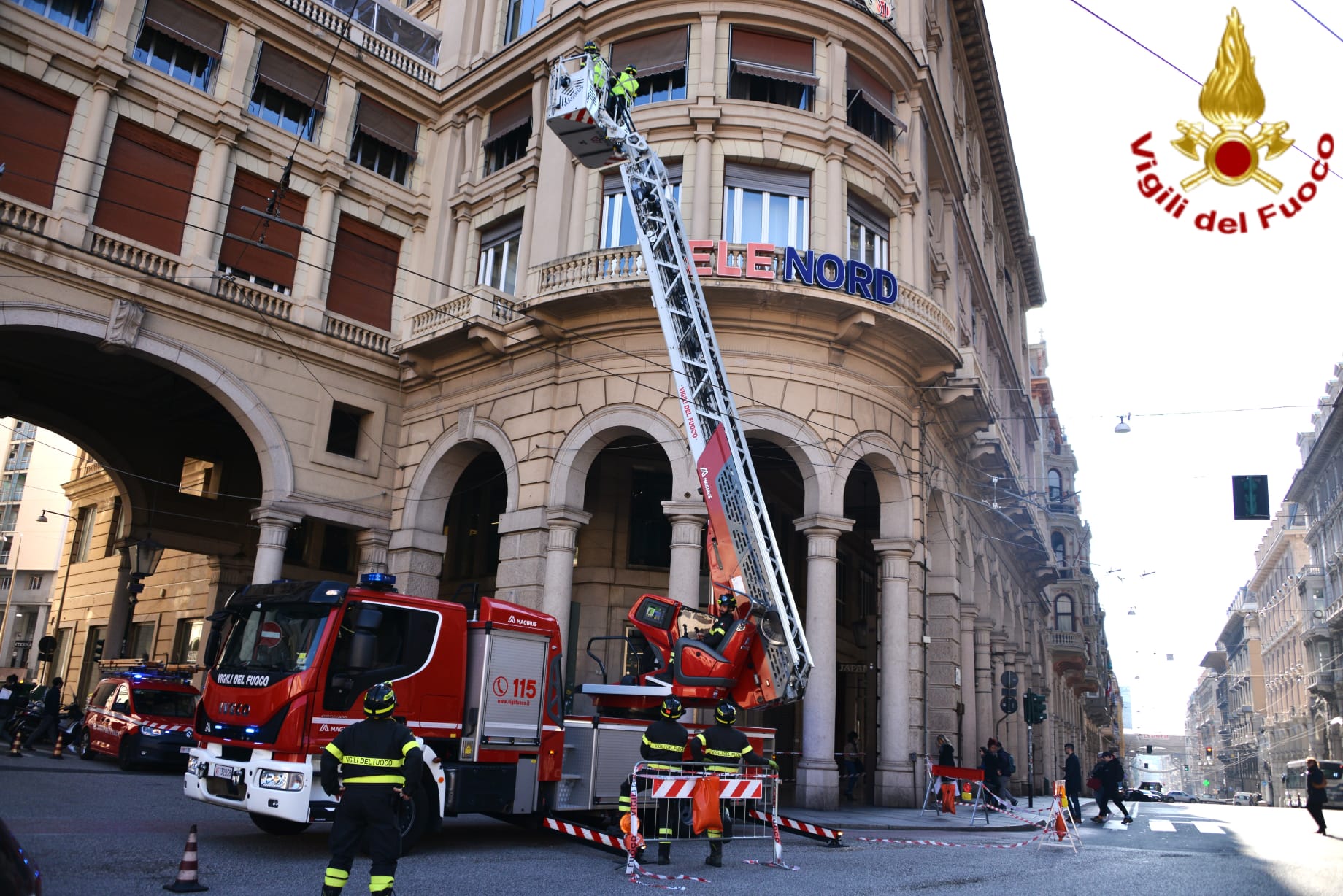 Questo pomeriggio, una parte di intonaco di un palazzo che affaccia su piazza De Ferrari a Genova, si è staccato cadendo lungo la carreggiata. Per rimuovere altre parti pericolanti e mettere in sicurezza la facciata, i vigili del fuoco hanno operato a lungo con l'autoscala.