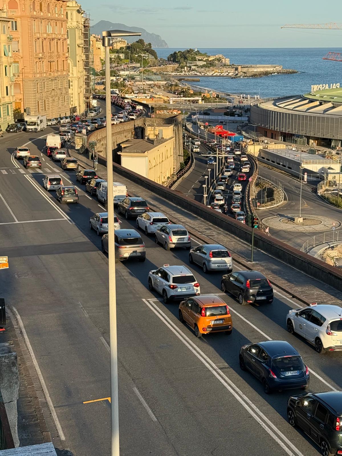 18.38 Traffico congestionato San Fruttuoso e Foce, veicoli fermi in zona Questura, via Dassori chiusa, tutti i bus sono deviati su Buenos Aires verso Nervi
