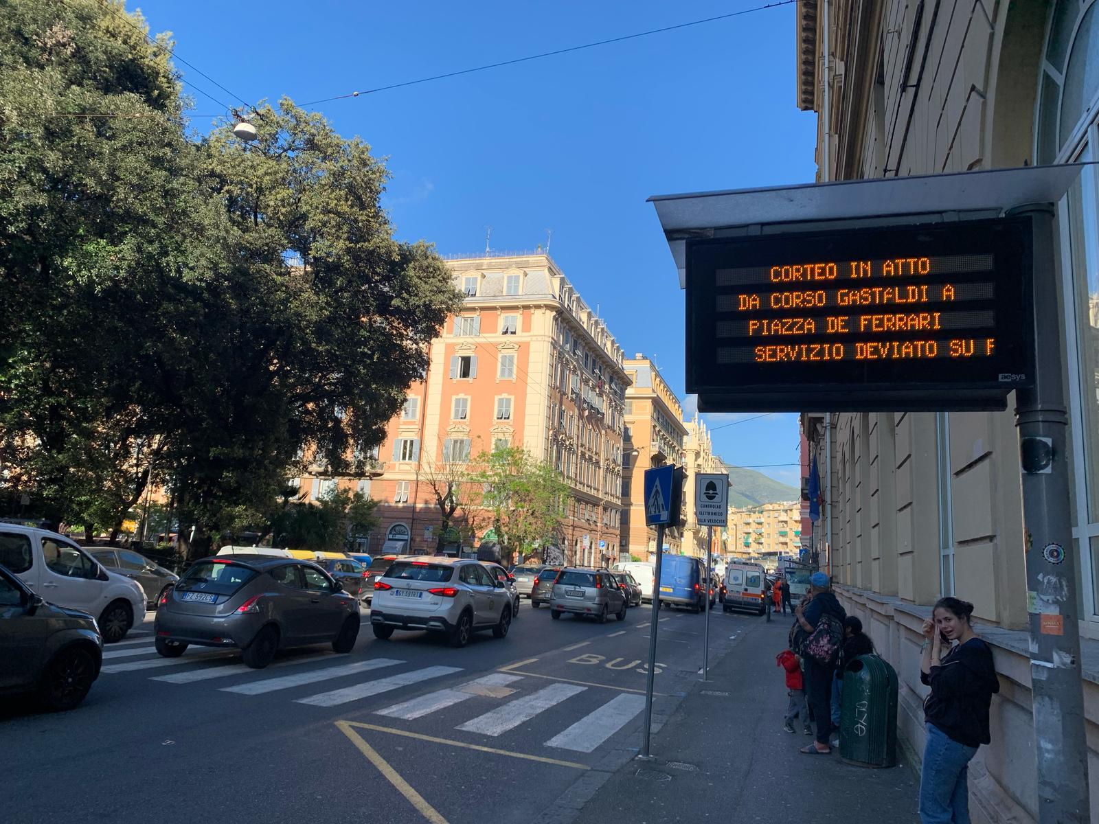 Code, strade chiuse e autobus deviati. Genova paralizzata per ore in una giornata da incubo per gli automobilisti e per quei cittadini che si dovevano spostare con i mezzi pubblici. Il traffico è rimasto bloccato in concomitanza con la manifestazione organizzata da Genova Antifascista partita, con un'ora di ritardo, alle 18.32, dalla Casa dello Studente, in corso Gastaldi. I manifestanti erano diretti in piazza De Ferrari. Disagi alla viabilità anche nel primo pomeriggio per il corteo studentesco che ha occupato la parte più a ponente del centro: da piazza Marsala a Principe. Entrambi gli eventi fanno parte delle celebrazioni per gli 80 anni della Liberazione. Oltre ai cortei ha inciso anche l'orario di rientro a casa dopo la giornata di lavoro per molte persone e la prima giornata di apertura al pubblico di Euroflora. Primocanale ha raccontato in diretta la situazione del traffico in città.