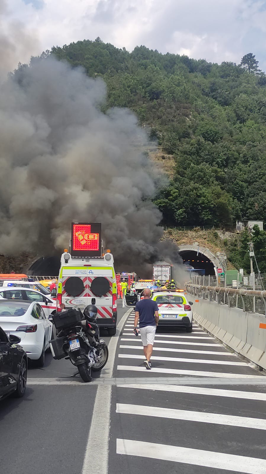 ORE 19:00 - Al momento le code sulla A7 e sulla A12, dove si era registrato un chilometro di coda per un incidente, sono risolte. Sulla A10 continuano a esserci cinque chilometri di coda. Verso le 19:30 il tratto dovrebbe riaprire con un cambio di carreggiata. Questa notte però il tratto verrà nuovamente chiuso per lavori riguardanti la pavimentazione, rovinata dalle fiamme.