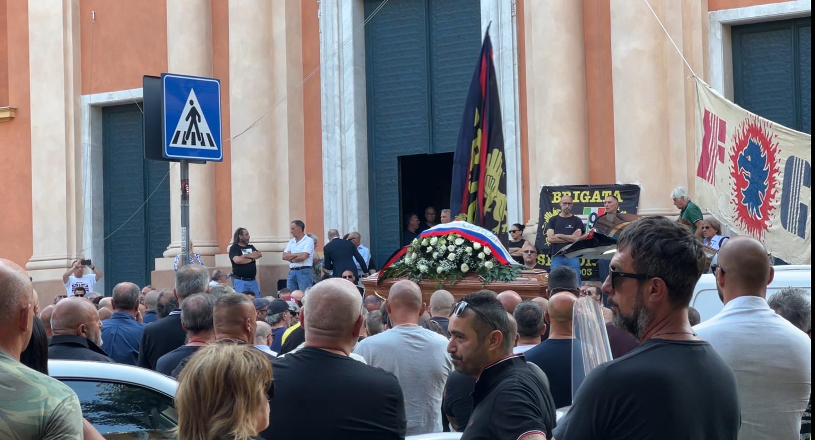 L'uscita dalla chiesa della bara avviene in una piazza Alimonda, da sempre cuore del tifo rossoblu più acceso, che batte le mani e sventola bandiere. C'è anche Claudio Onofri, vecchia gloria del Genoa, capitano storico che non smette di accarezzare il feretro sul carro funebre, come a non lasciarlo andare. Fabrizio Fileni, per tutti "Tombolone", il braccio destro di Massi, piange a dirotto. Ci sono anche due vecchi detective ormai in pensione della squadra tifoserie della Digos, che rendono onore così all'ultrà, come alcuni ultras della Sampdoria, i cugini.