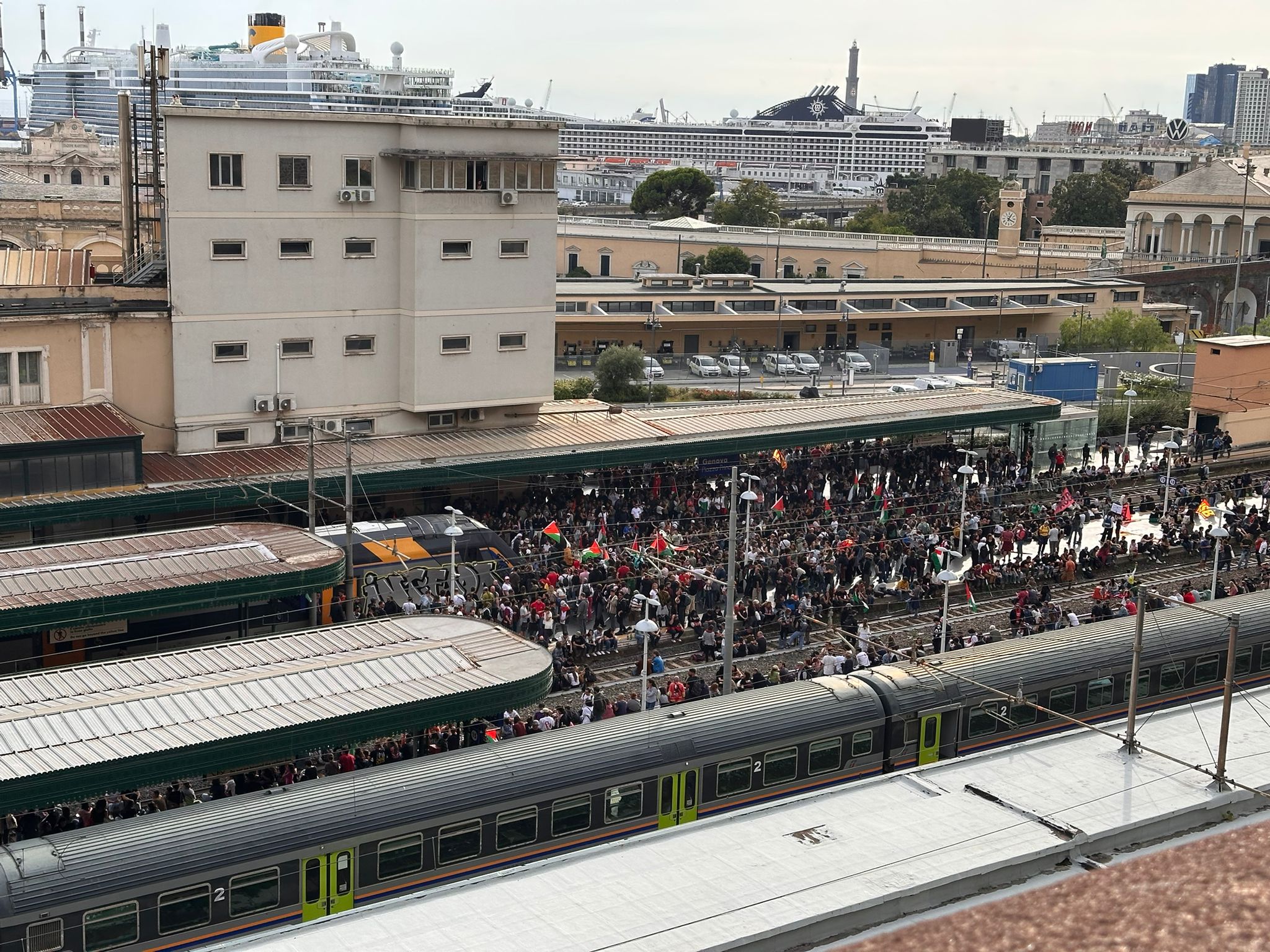 Ore 15.34: Occupata la stazione di Principe, Per motivi di ordine pubblico la circolazione ferroviaria è sospesa nel nodo di Genova