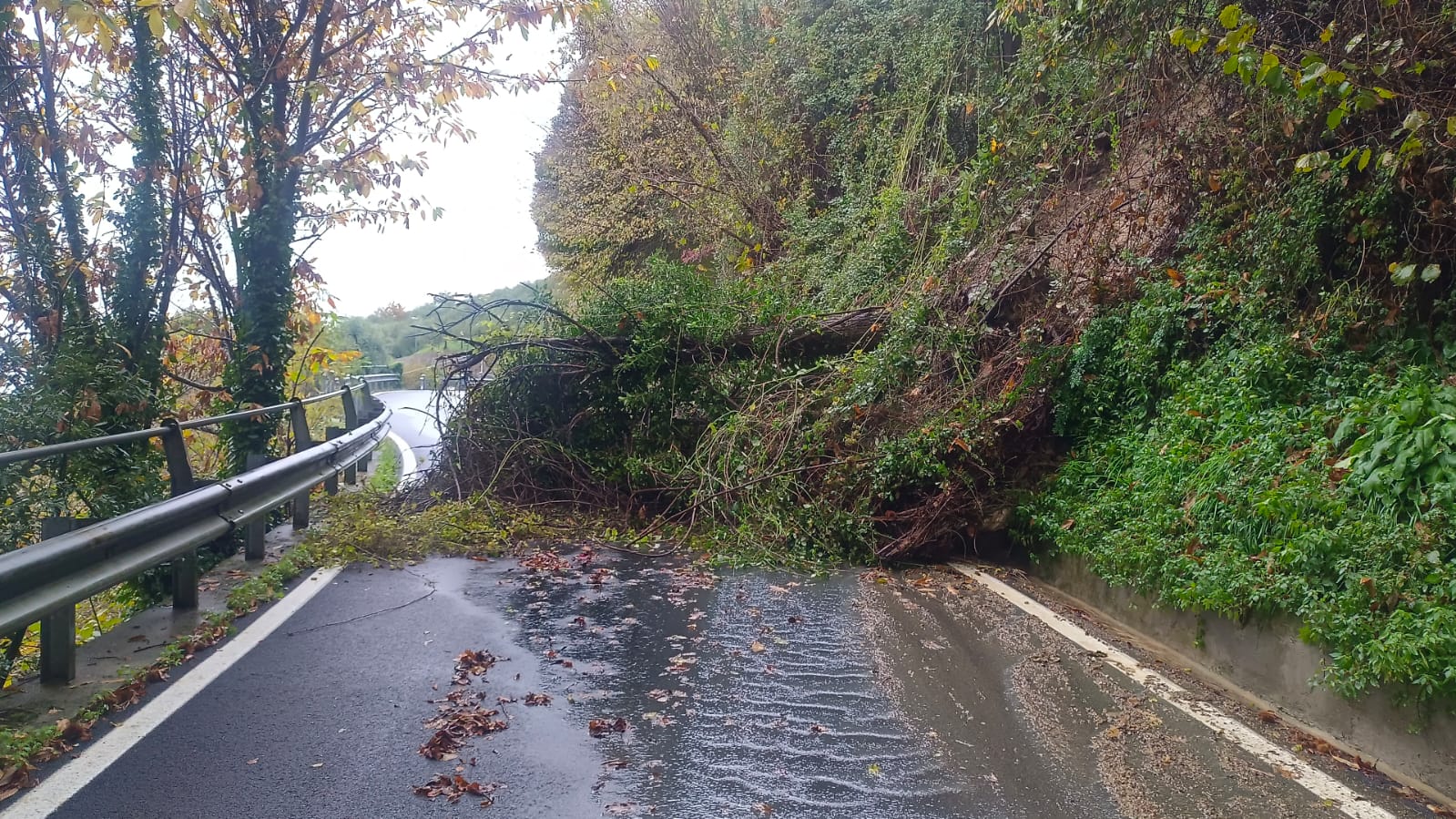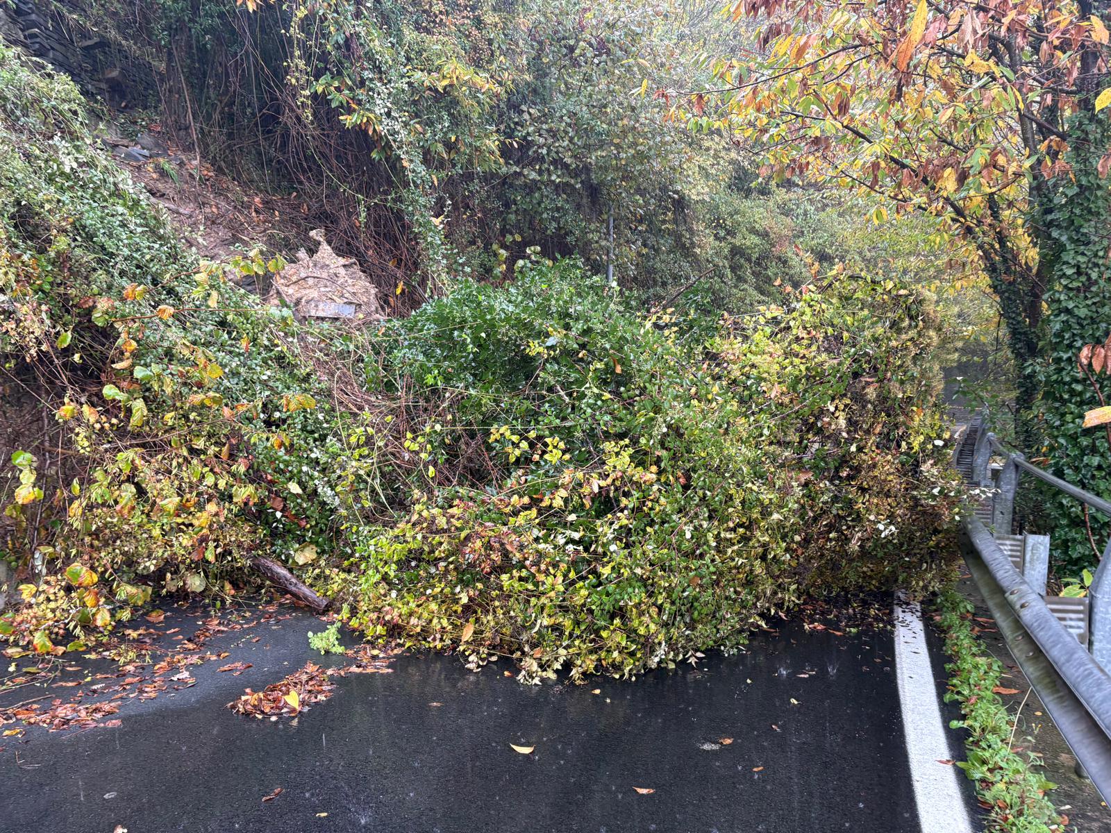 20 - Nell'imperiese a Cipressa si è verificata una frana che ha portato alberi e rami in mezzo alla strada. Nelle ultime ore piogge intense nella zona di Rapallo.