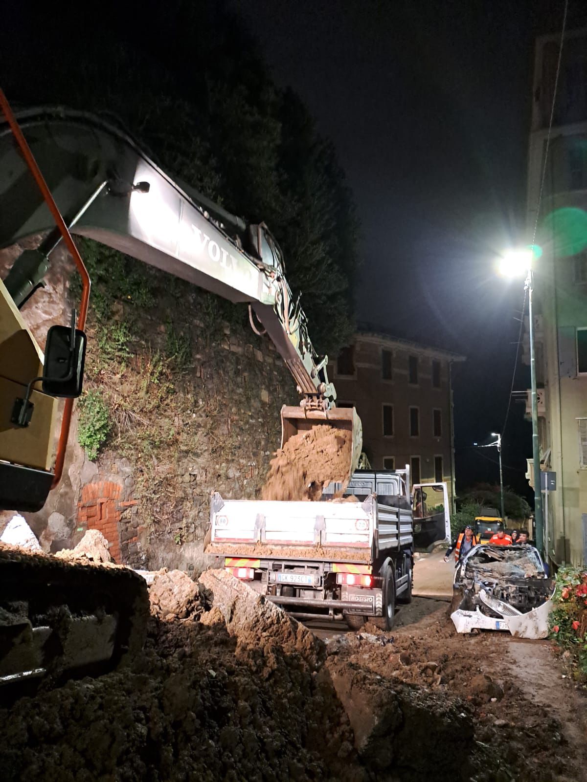 11.21: è crollato un muro di contenimento in via del Palazzo sulle alture Quezzi ed è caduto un albero in via Tortona