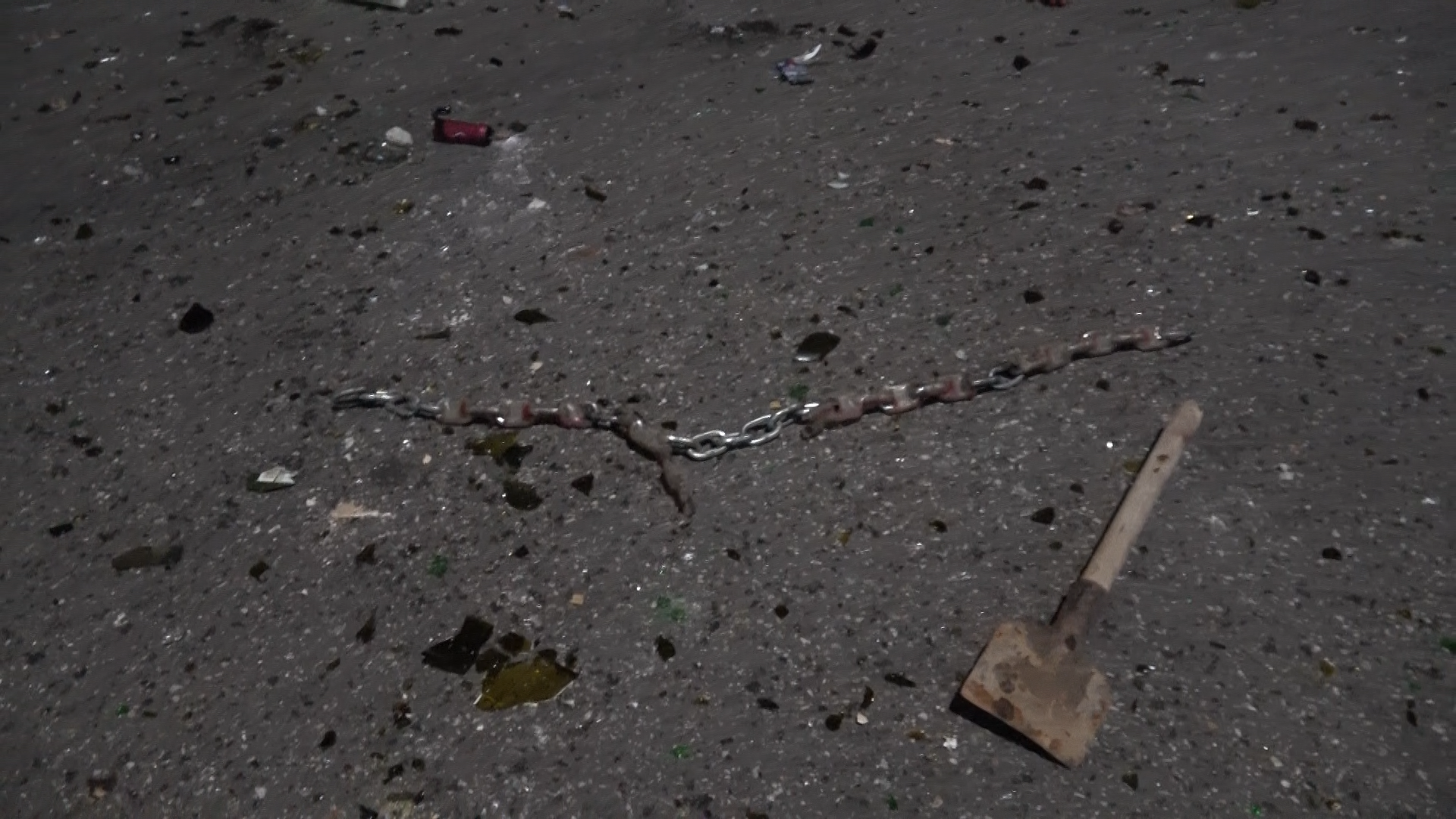 Impossibilitati a raggiungere l'obiettivo, nel giro di poco un gruppo di soggetti si è staccato dal principale gruppo e, travisatisi e con i caschi calzati, ha iniziato un fitto lancio di oggetti all’indirizzo dei reparti, facendo uso di bottiglie e rifiuti recuperati da una campana del vetro e da bidoni rovesciati in strada, di tondini metallici recuperati da un cantiere edile privato nelle vicinanze, violato, nonché di grossi petardi, fumogeni e artifizi pirotecnici.