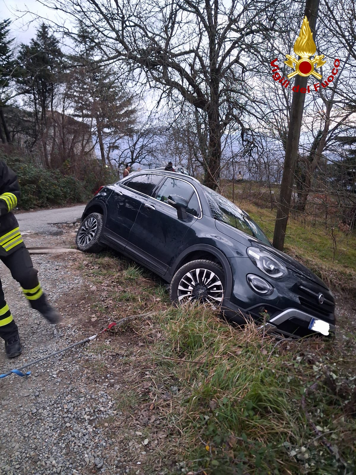 Senza conseguenze per la salute, ma rimasto bloccato, ha chiamato i Vigili del Fuoco che, grazie all'uso di un trattore in dotazione, sono riusciti a raggiungere il punto dell'incidente, irraggiungibile per altri mezzi a causa di un voltino di ridotte dimensioni, e riportare sulla strada la vettura.