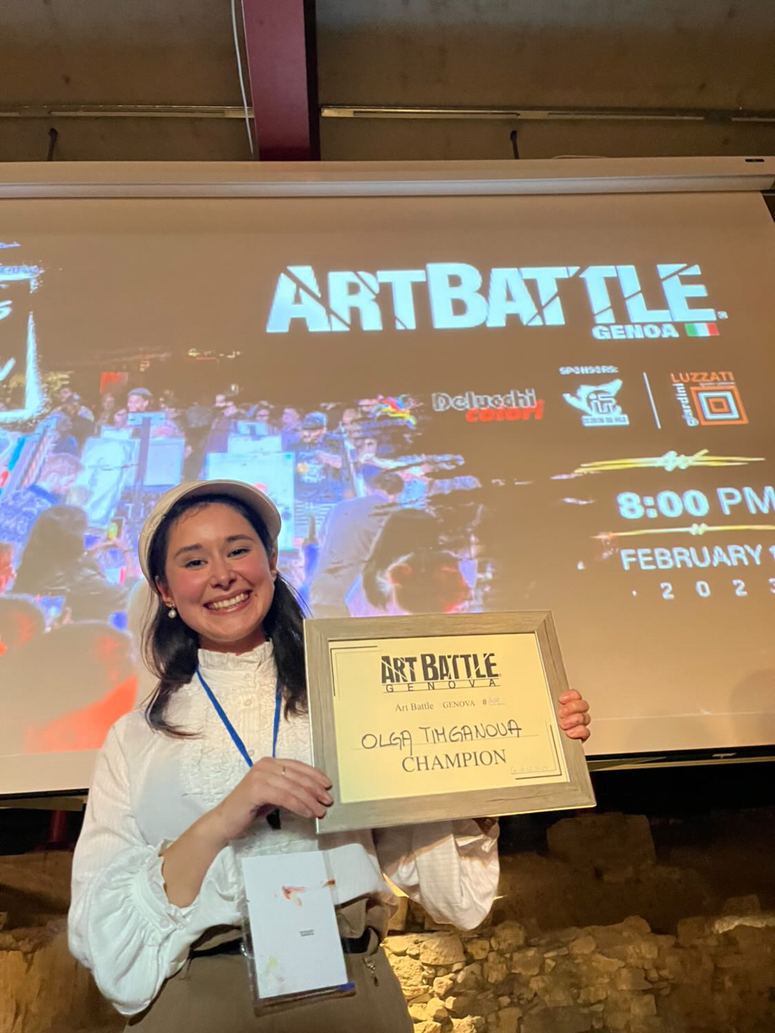 La giovane, che dalla Russia si è trasferita in Italia tre anni fa, è una pittrice che può vantare già diversi riconoscimenti a livello internazionale. E proprio a Genova ha vinto l'edizione 2023 di Art Battle, una vera e propria competizione che ogni serata mette a confronto 12 artisti che in 20 minuti devono trasformare una tela bianca in un'opera. A scegliere il vincitore è il pubblico, dopo tre round. Durante la serata, accompagnata da un super dj set, è possibile acquistare le opere facendo un'offerta all'asta silenziosa. Il format internazionale è sbarcato anni fa in Italia proprio nel capoluogo ligure e non si è più tenuto per 3 anni a causa della pandemia. Quest'anno, l'evento si è tenuto in due date diverse a gennaio e a febbraio all'interno dell'area archeologica dei Giardini Luzzati. "Ne sono venuta a conoscenza tramite una mia amica e i social network ed è stata una bellissima serata, di un'energia indimenticabile", racconta Olga a Primocanale.