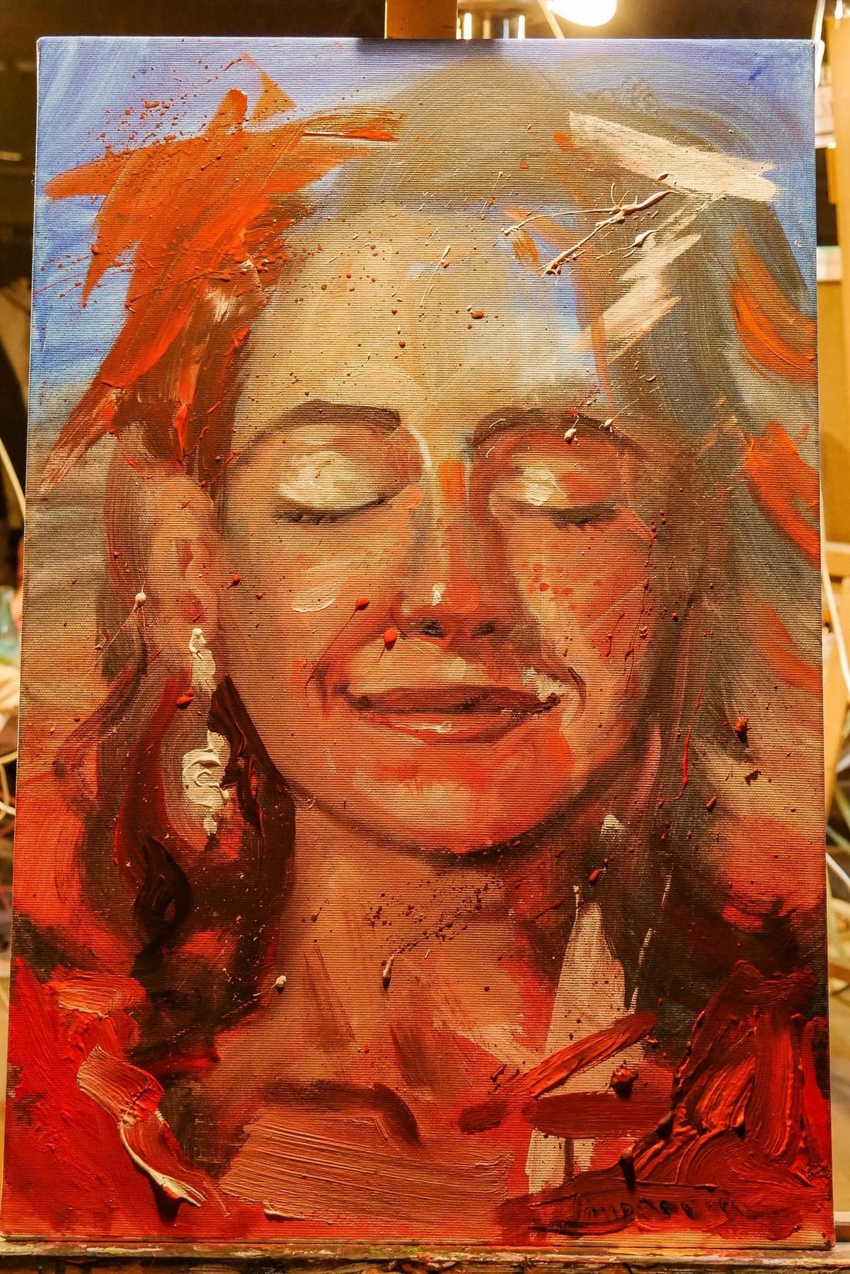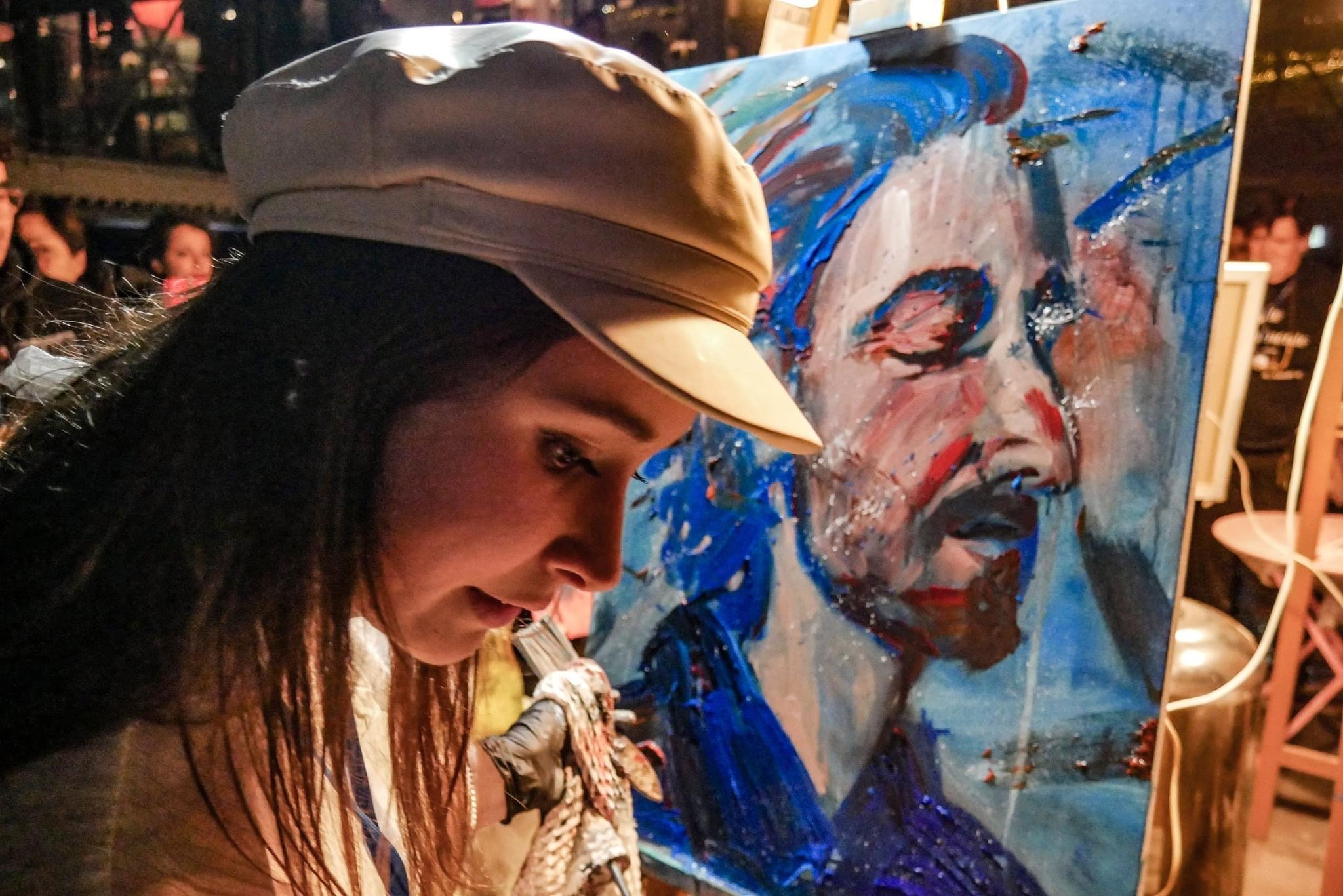 "Ho realizzato due quadri, nel primo caso ho fatto un ritratto di una mia amica, un soggetto già affrontato prima che ho deciso di ripetere perché lo conoscevo già, ma più colorato. Per il secondo ho scelto di dipingere il volto di Adrien Brody, che è uno dei miei attori preferiti: il suo viso è molto caratteristico, mi è venuto di getto"