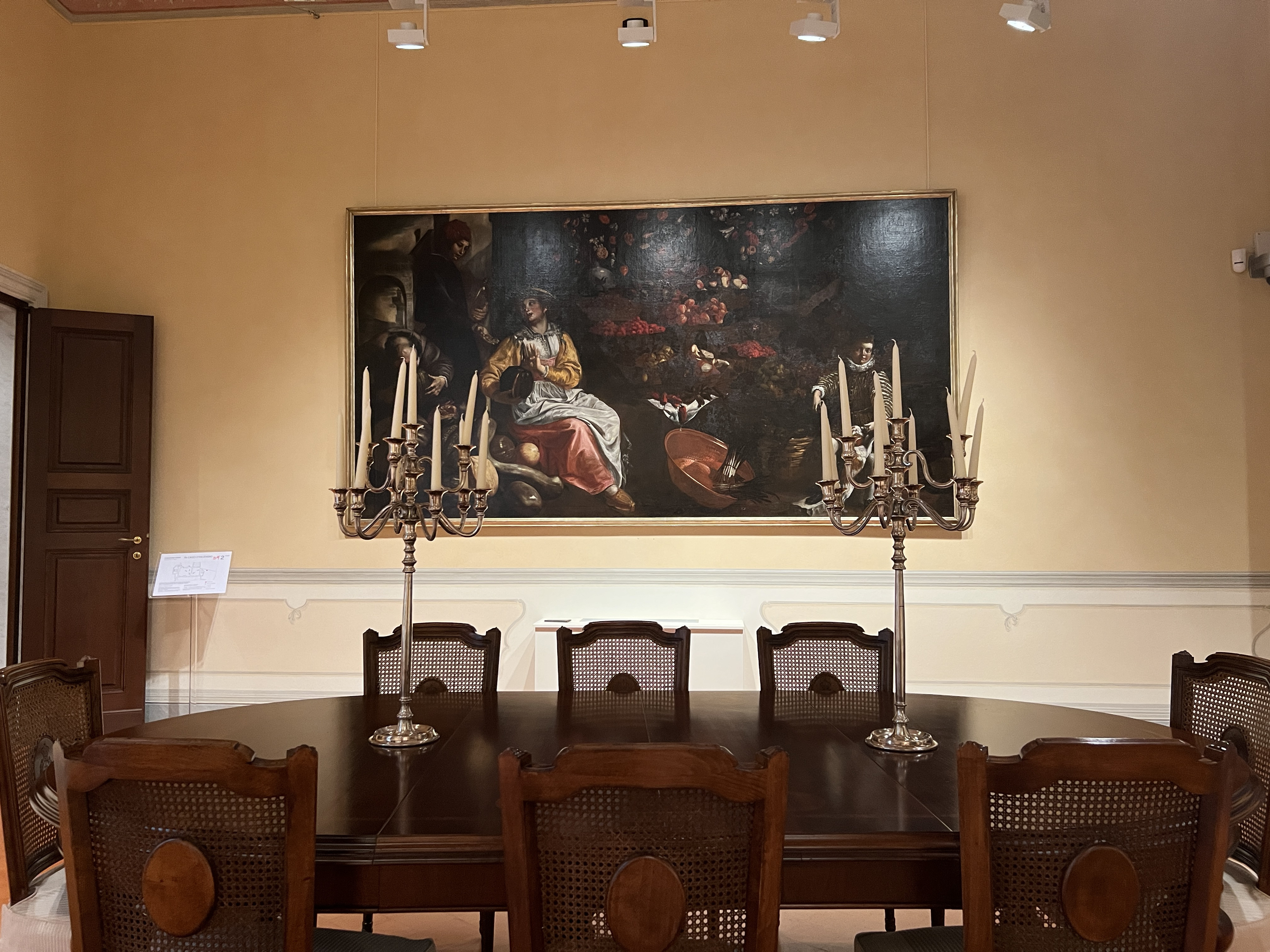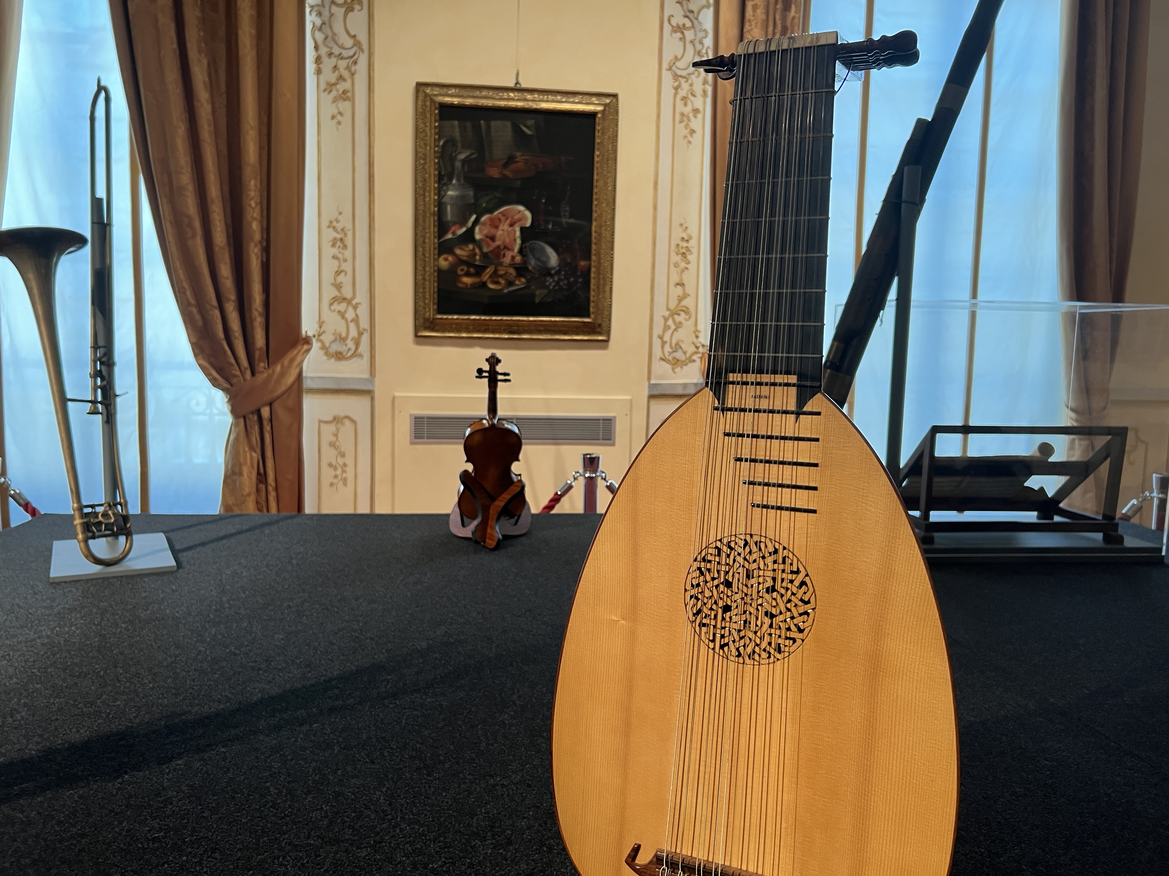 "Il Conservatorio Niccolò Paganini ci ha prestato degli strumenti musicali che fanno la loro bella figura e si incontrano con un gioco di richiami. I dipinti della sala dedicata appunto alla musica"