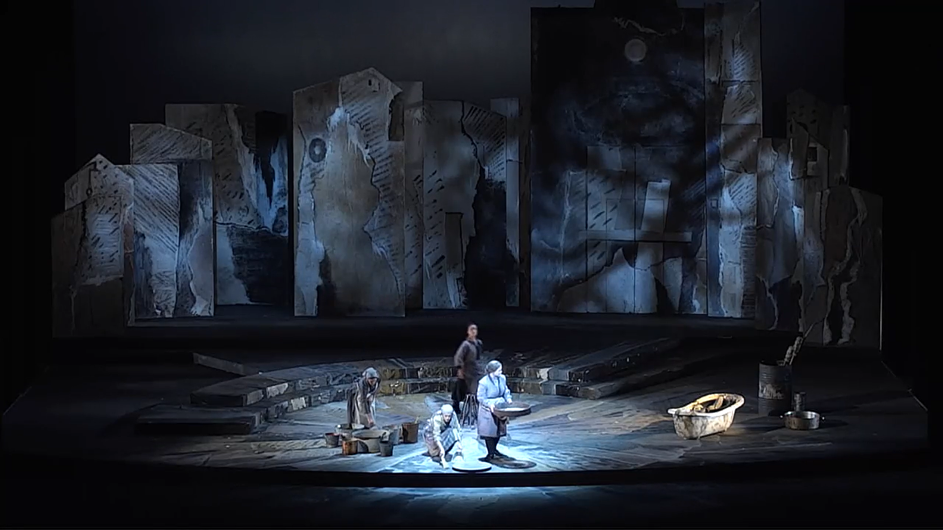 Una scena di 'Cavalleria rusticana' del 2019 la cui messa in scena viene ripresa in questa edizioneL'ambientazione è un antico teatro trasformato dal tempo