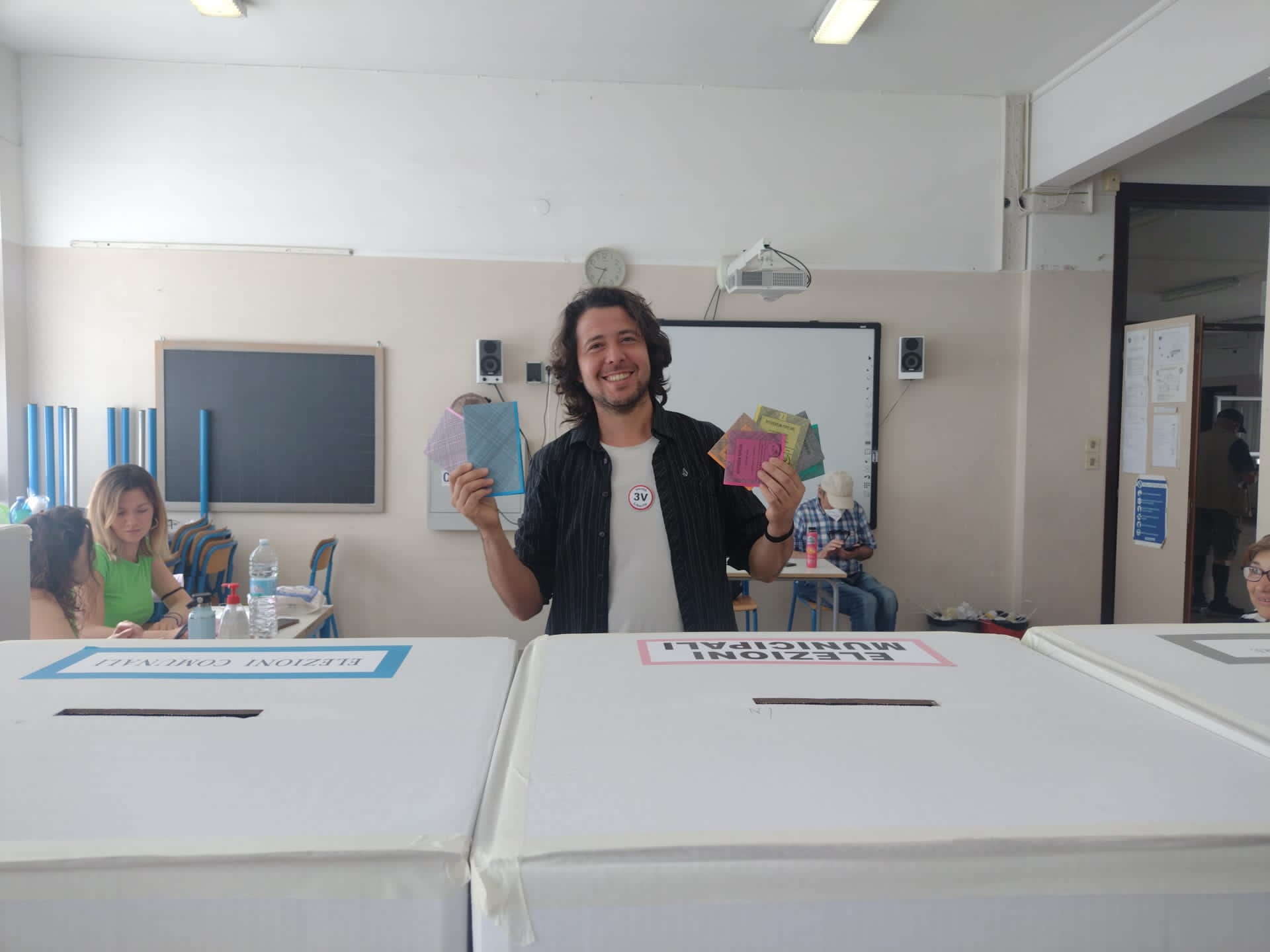Mattiniero al voto anche Mattia Crucioli, candidato sindaco per Uniti per la Costituzione, che alle 7,30 metteva le schede ripiegate nelle urne al liceo Cassini di Via Galata, e che al voto è andato da solo, evitando anche la foto e i video di rito. Martino Manzano Olivieri (candidato per 3v Verità Libertà) ha votato alle 9,30 circa, in via Bologna.