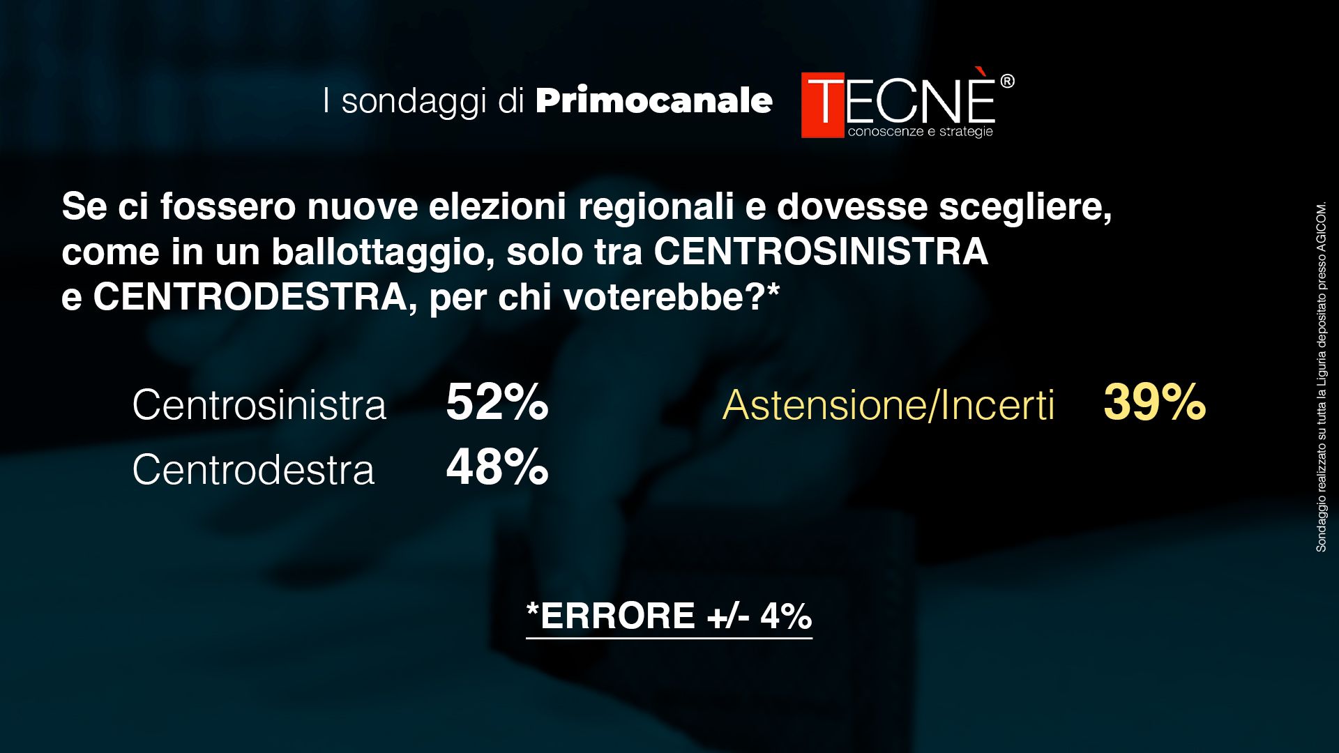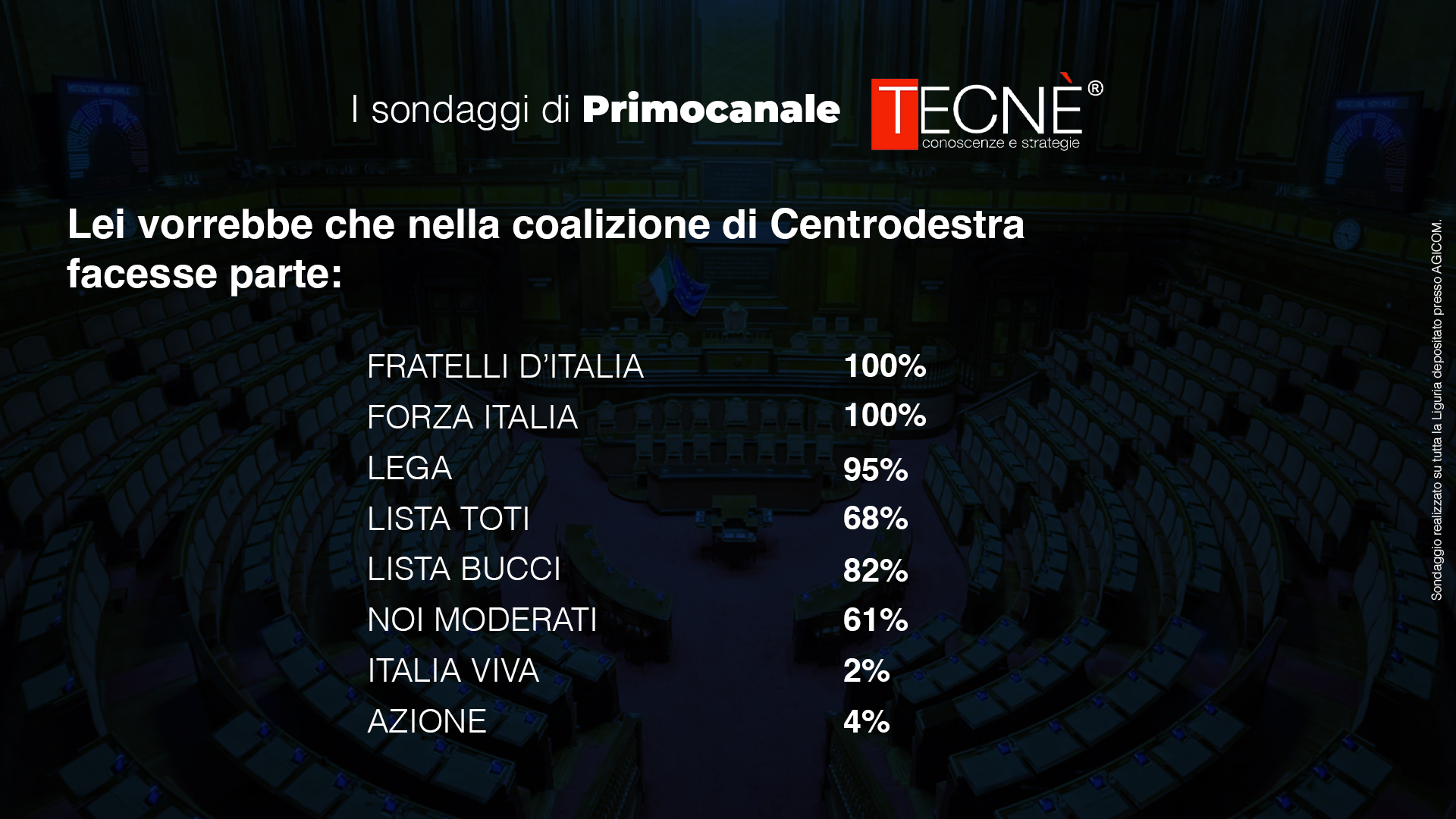Primocanale ha commissionato a Tecnè il sondaggio sul “Futuro politico della Liguria”. Lo ha fatto in un momento particolare per la nostra regione in pieno terremoto per le inchieste che hanno coinvolto porto e Regione e che hanno portato ai domiciliari il presidente Toti. Tante sono state le doman