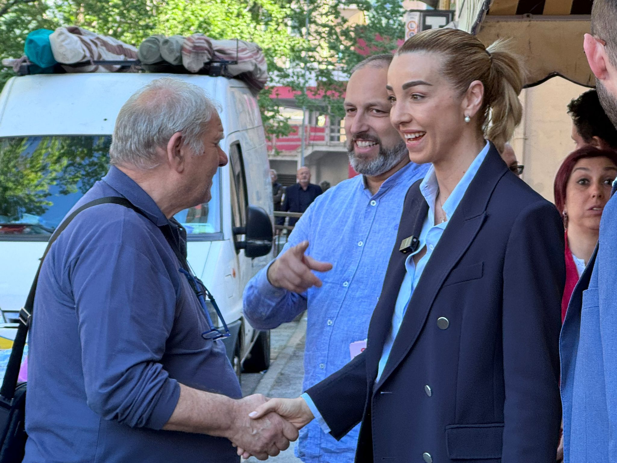 Il van di Primocanale e la candidata Silvia Salis