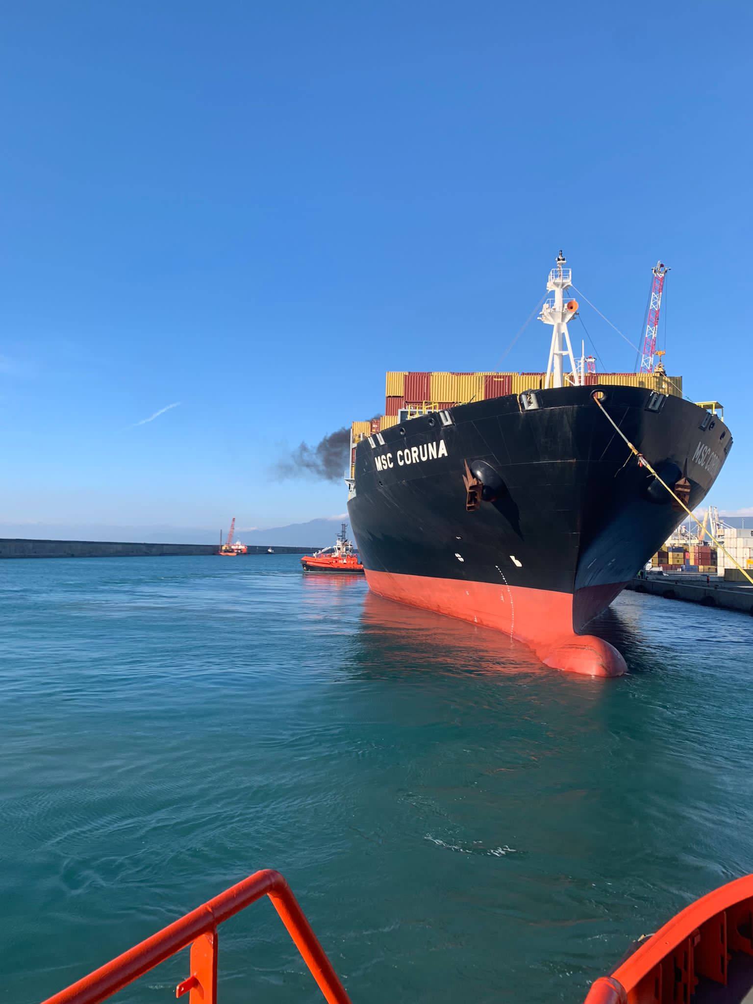 Grande impegno e attenzione per questa "prima volta" anche per piloti, ormeggiatori e rimorchiatori: "Se non ci fosse stato il vento di tramontana a 18 nodi avremmo usato solo due rimorchiatori - racconta Fabrizio Dolfini, vice comandante dei Rimorchiatori Riuniti - ma oggi ne abbiamo usati tre. Tutto è andato per il meglio. La nostra attenzione è rivolta soprattutto alle interazioni con le altre navi, per questioni di dislocamento, cioè di massa, da cui dipende la stabilità della nave ormeggiata e di quelle che transitano".