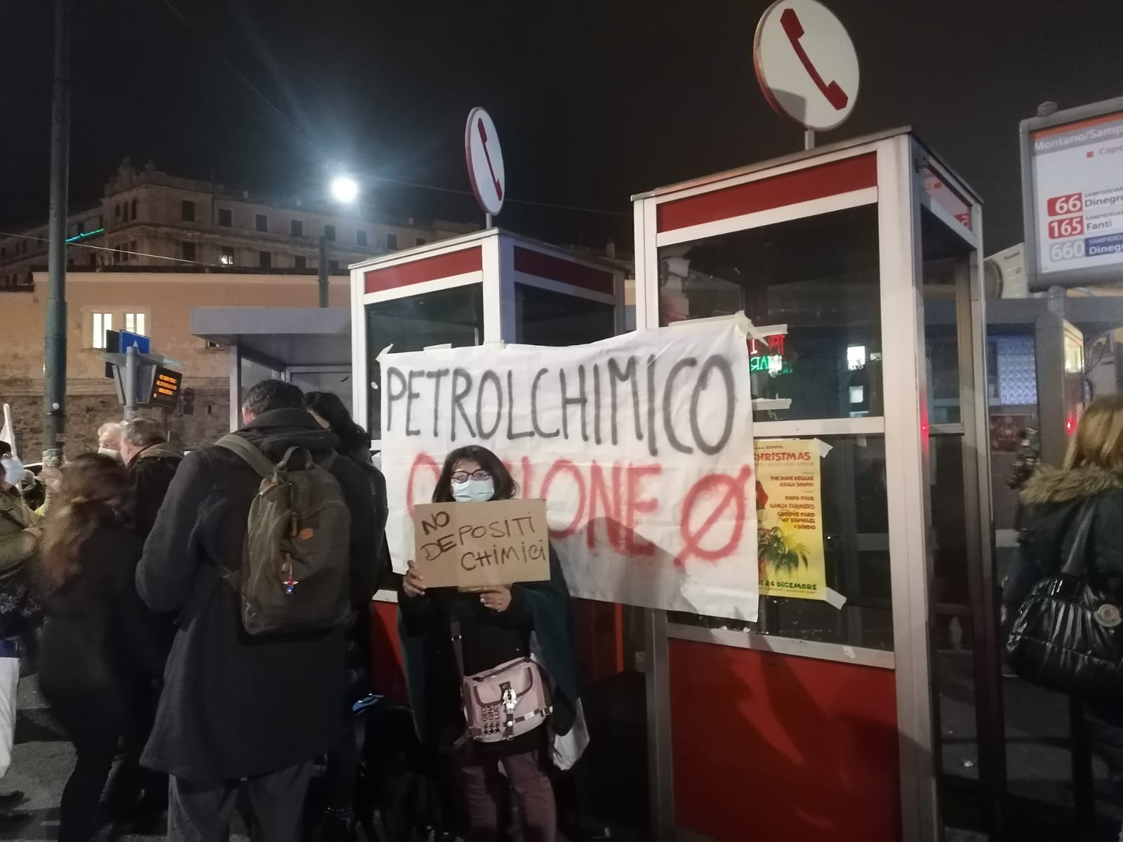 Circa un migliaio di persone che si sono radunate per la protesta spontanea nel quartiere di Genova Sampierdarena contro lo spostamento dei depositi petrolchimici a Ponte Somalia, a circa 300 metri dalle case. Rabbia, delusione e un sonoro no da parte dei cittadini accorsi in questo giovedì 23 dicembre in piazza Montano. "L'unica progettazione è la speculazione", "Petrolchimico opzione 0", "No ai depositi petrolchimici". Sono queste le frasi che si leggono su striscioni e cartelli in mano ai partecipanti.