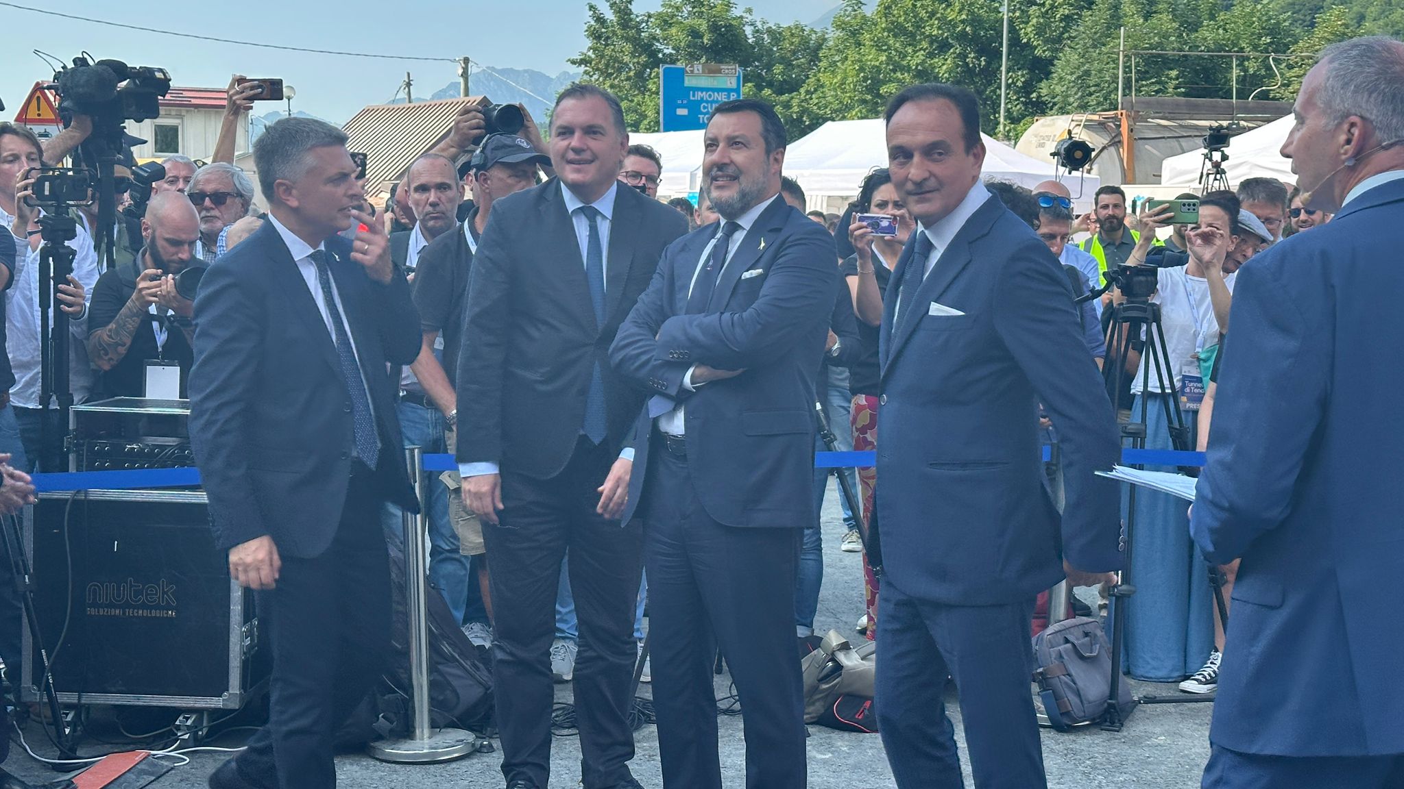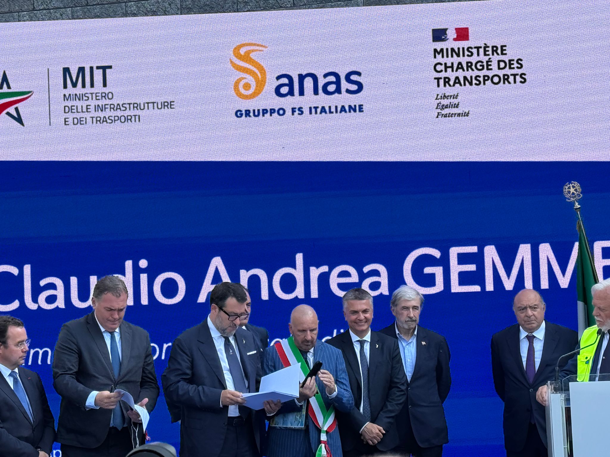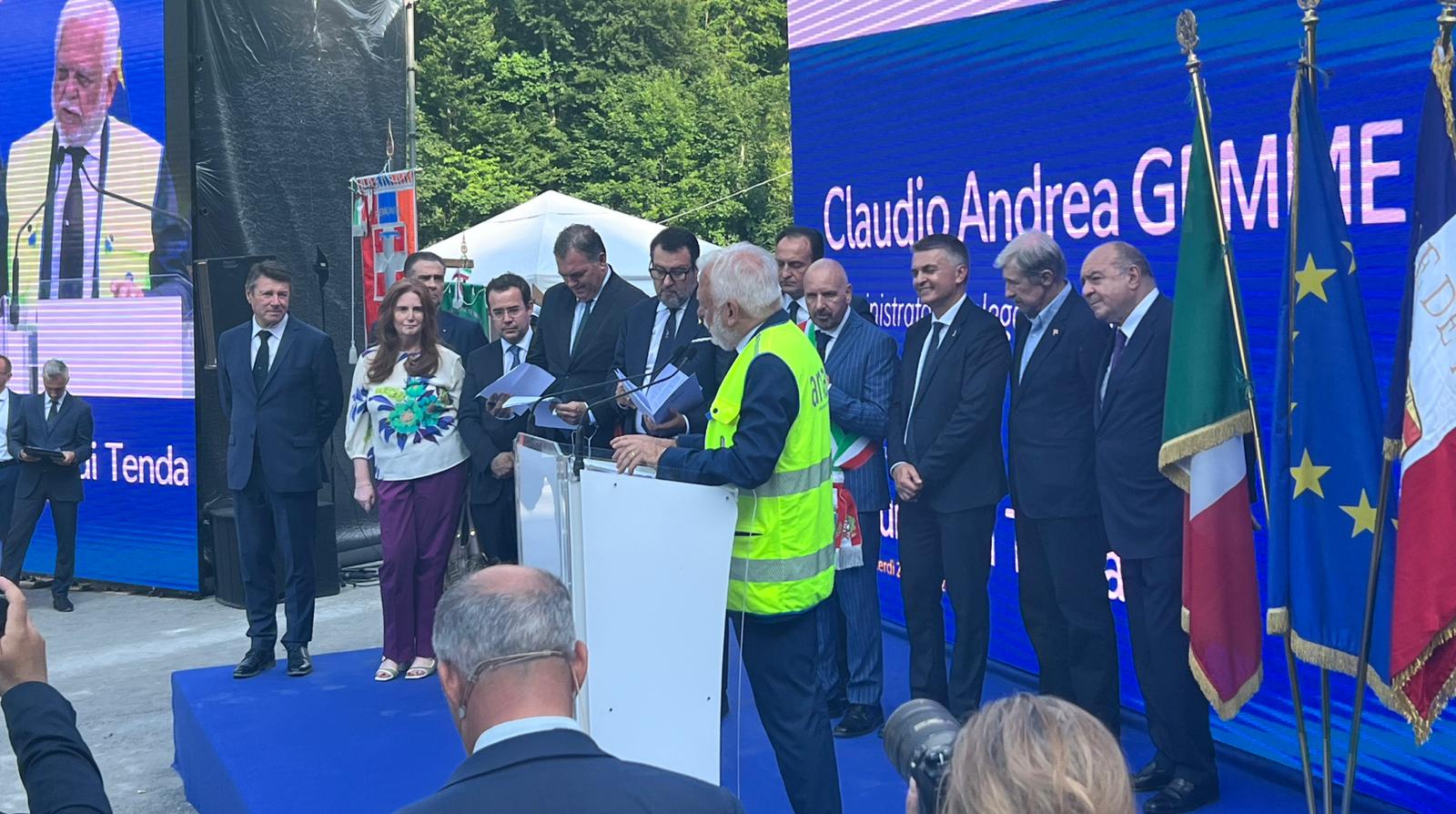 "Più che una giornata di festa una giornata di ringraziamento, da tutte le comunità alpine" ha detto il ministro alle Infrastrutture Matteo Salvini. Rivolgendosi poi al collega francese, il ministro dei Trasporti Philippe Tabarot, ha scherzato sulla competitività tra l'Italia e il Paese transalpino. Uno humor che ha ricambiato quello di Tabarot, che aveva appena detto: "Vorrei sottolineare l'incredibile gusto degli italiani per la suspence: fino all'ultimo non sapevamo nulla e solo venendo qui il miracolo è avvenuto. A volte Italia e Francia in ambito sportivo, culturale e culinario si trasforma in un match. Questa volta si è trasformata in un qualcosa di bello" ha detto il vicepremier. "Le prime auto domani escono da Limone e passano nel tunnel. Ci tengo da una valle a un'altra valle, a ringraziare le centinaia delle ragazze e dei ragazzi in divisa che stanno permettendo l'avanzamento dei lavori per il collegamento tra Italia e Francia perché nel 2033 da Torino a Lione si arriverà velocemente in treno. Voglio ringraziare gli operai. Ringrazio per la pazienza le popolazioni del territorio, che hanno dovuto sopportare ma che ora, dopo anche il Covid e la tempesta Alex, oggi possono vedere il futuro con speranza. Finalmente si collega l'Italia alla Francia e la provincia di Imperia al Piemonte. Ancora per qualche giorno a fasce orarie ma entro il 15 di luglio vogliamo aprirlo in maniera continuata. Consente di avere un collegamento molto più rapido, è un grande traguardo, è un inizio: la buona politica, se lavora tanto, porta a casa dei risultati".