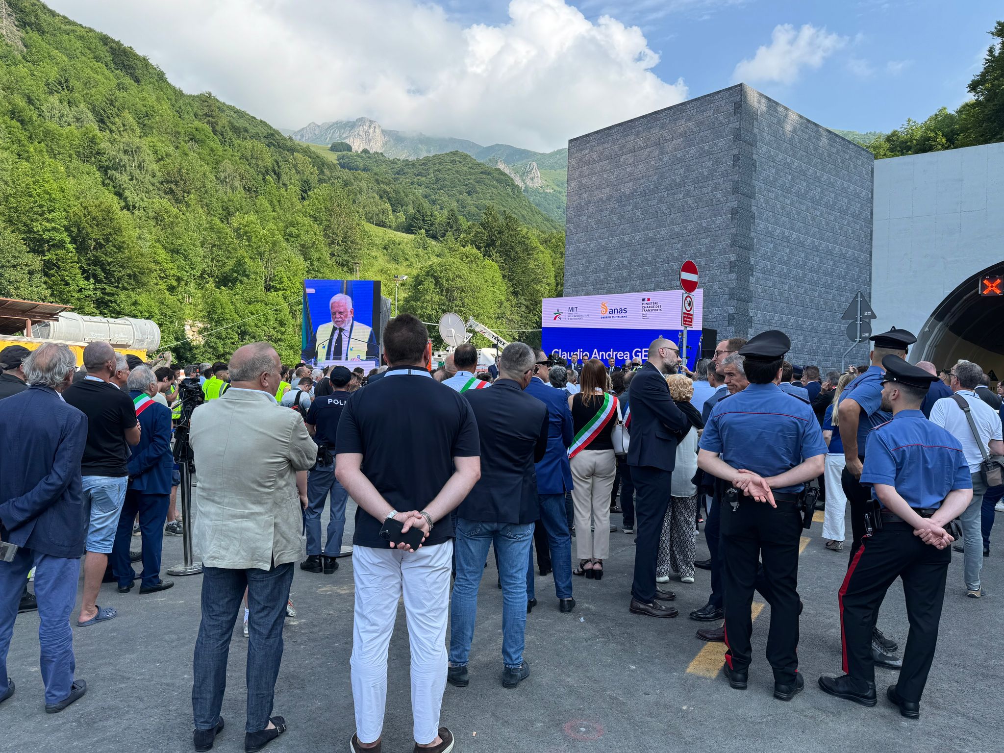 "Una giornata fantastica, un traguardo importante ma anche un inizio, quello del lavoro da completare" ha detto Claudio Andrea Gemme, amministratore delegato di Anas, poco prima dell'inizio della cerimonia. "Sistemeremo l'altra canna, quella vecchia, e renderemo i tunnel percorribile a tutte le ore. Questo tunnel è una macchina con tecnologie pazzesche che devono funzionare perfettamente, quindi sono soddisfatto anche se, ripeto, voglio che questo sia l'inizio di un percorso. L'opera sarà completa quando riusciremo a recuperare anche l'altra canna che ora si usa per la sicurezza. Ricordo la prima volta che sono venuto insieme al viceministro Rixi dopo la tempesta Alex, avevamo una visione per questo bellissimo territorio e finalmente siamo riusciti a realizzare quello che serviva".