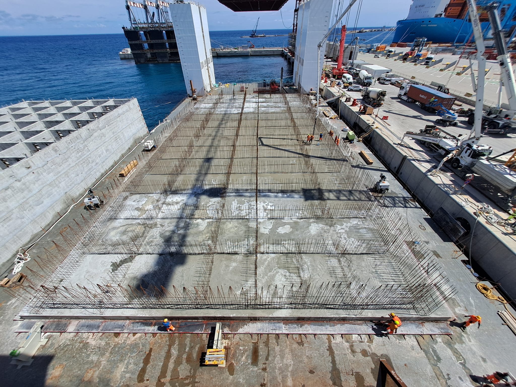 In tutto i mega cassoni saranno 35 in tutto su un totale di 73. Per costruirli è impiegata la Tronds Barge 33, una chiatta semisommergibile lunga 110 metri e larga 45 metri, in grado di immergersi fino a 20 metri sotto il livello dell'acqua. Questa capacità di affondamento consente di abbassare il ponte della chiatta al di sotto della linea di galleggiamento, facilitando le operazioni di varo e movimentazione dei cassoni.