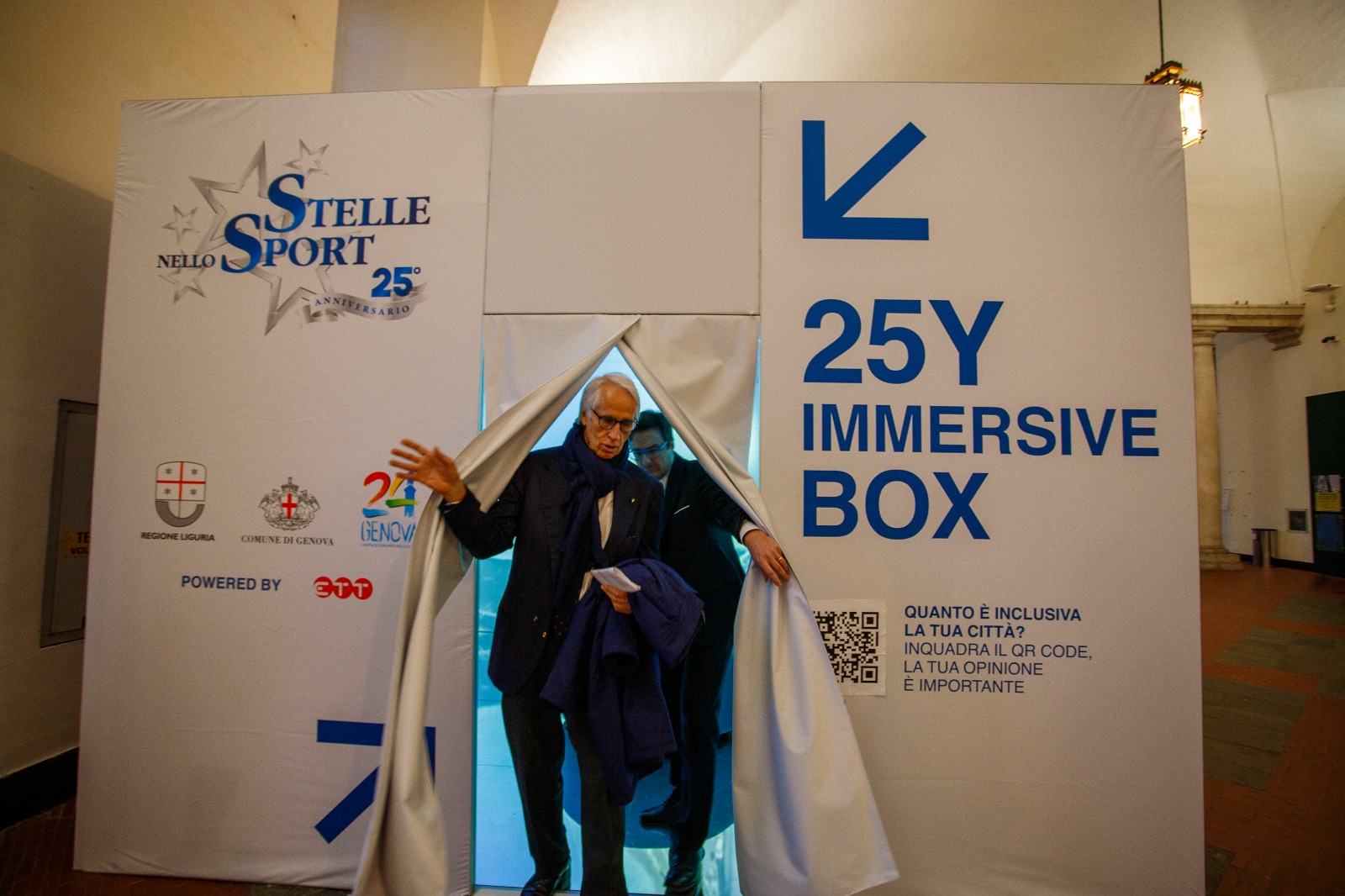 ETT, azienda genovese di Gruppo SCAI che progetta e produce a livello internazionale allestimenti multimediali per cultura, turismo ed eventi, si è occupata della progettazione dell’allestimento, dello sviluppo, fornitura e posa in opera degli hardware e di tutta la produzione dei contenuti audiovisivi per il cubo immersivo 25Y IMMERSIVE BOX ideato per festeggiare i 25 anni di Stelle nello Sport, progetto che promuove eventi e attività per valorizzare tutti gli sport e diffondere la cultura e i valori sportivi in Liguria. Dopo la grande anteprima del 4 aprile scorso a Palazzo Ducale, la camera immersiva farà tappa alla Festa dello Sport dal 24 al 26 maggio 2024 ai Magazzini del Cotone, nel Modulo 7 degli spazi espositivi.