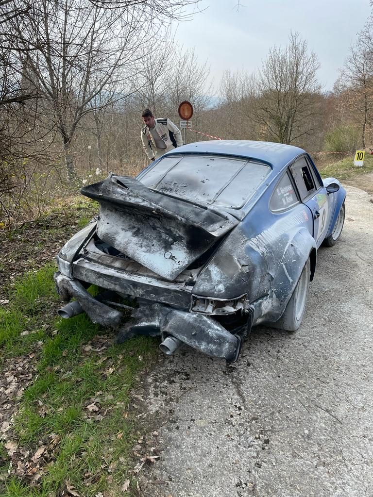 L’estintore a bordo e specialmente l’arrivo dei commissari di gara con estintori più grandi hanno consentito di spegnere l’incendio. I materiali e abbigliamento ignifughi usati da pilota e navigatore come tute, guanti, sottocaschi sedili della Omp sono stati come sempre eccezionali, anche se i tempi di uscita dall’auto sono stati molto brevi e il materiale tecnico è in grado di resistere a tempi molto più lunghi a contatto con il fuoco.