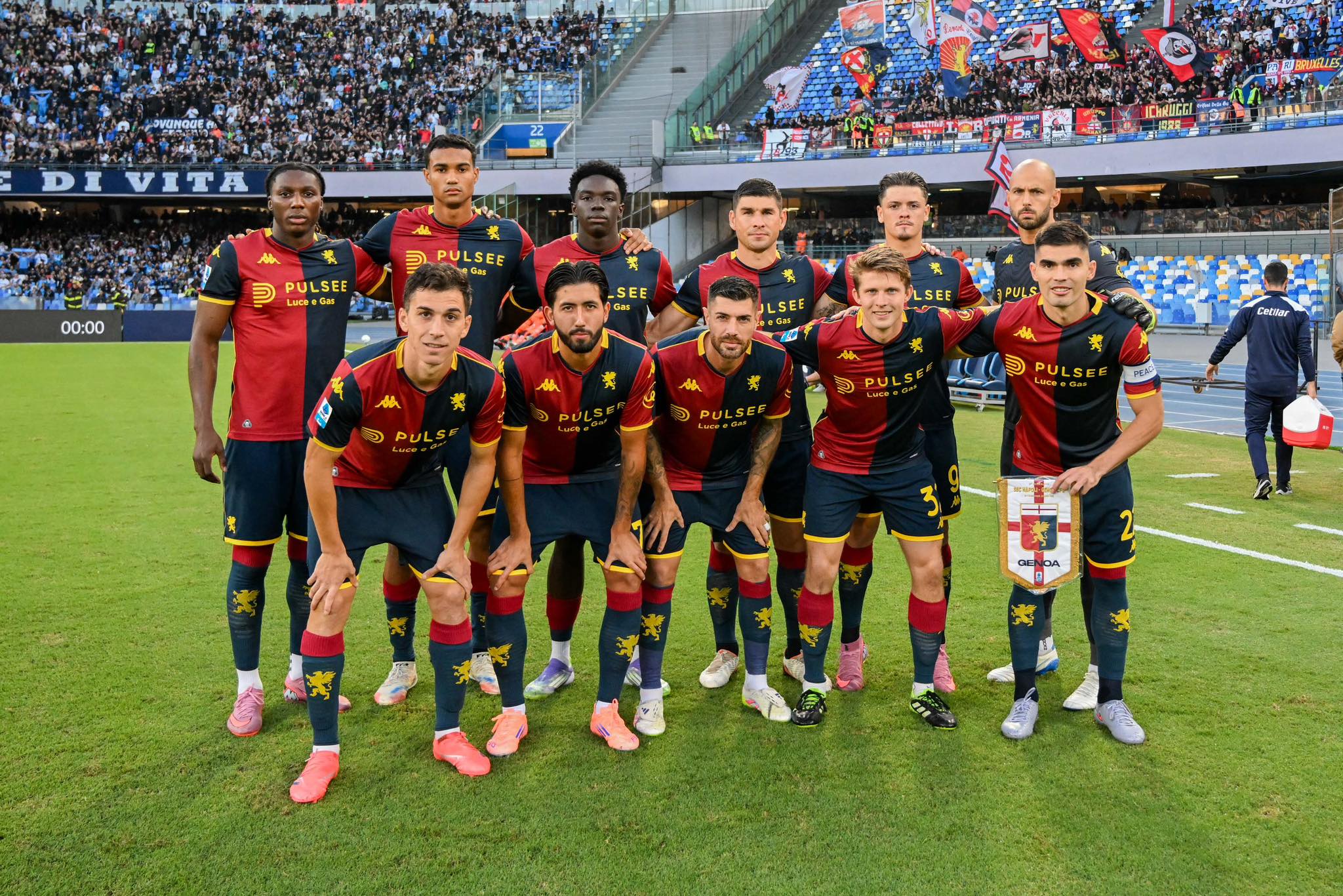 La formazione iniziale dei rossoblù al Maradona (foto Genoa Cfc)Al Maradona, dopo una partita altamente equilibrata, finisce col Napoli che accoglie come una liberazione il triplice fischio di La Penna e col Genoa costretto alla terza sconfitta consecutiva: mai era successo prima d'ora sotto la gestione Vieira. Al di là della battuta d'arresto, il Grifone torna a casa con molte certezze in più, soprattutto allontanando tutti quei fantasmi che avevano scandito il dopo-Lazio.